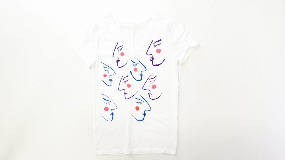 Create an abstract face print t-shirt with fabric markers