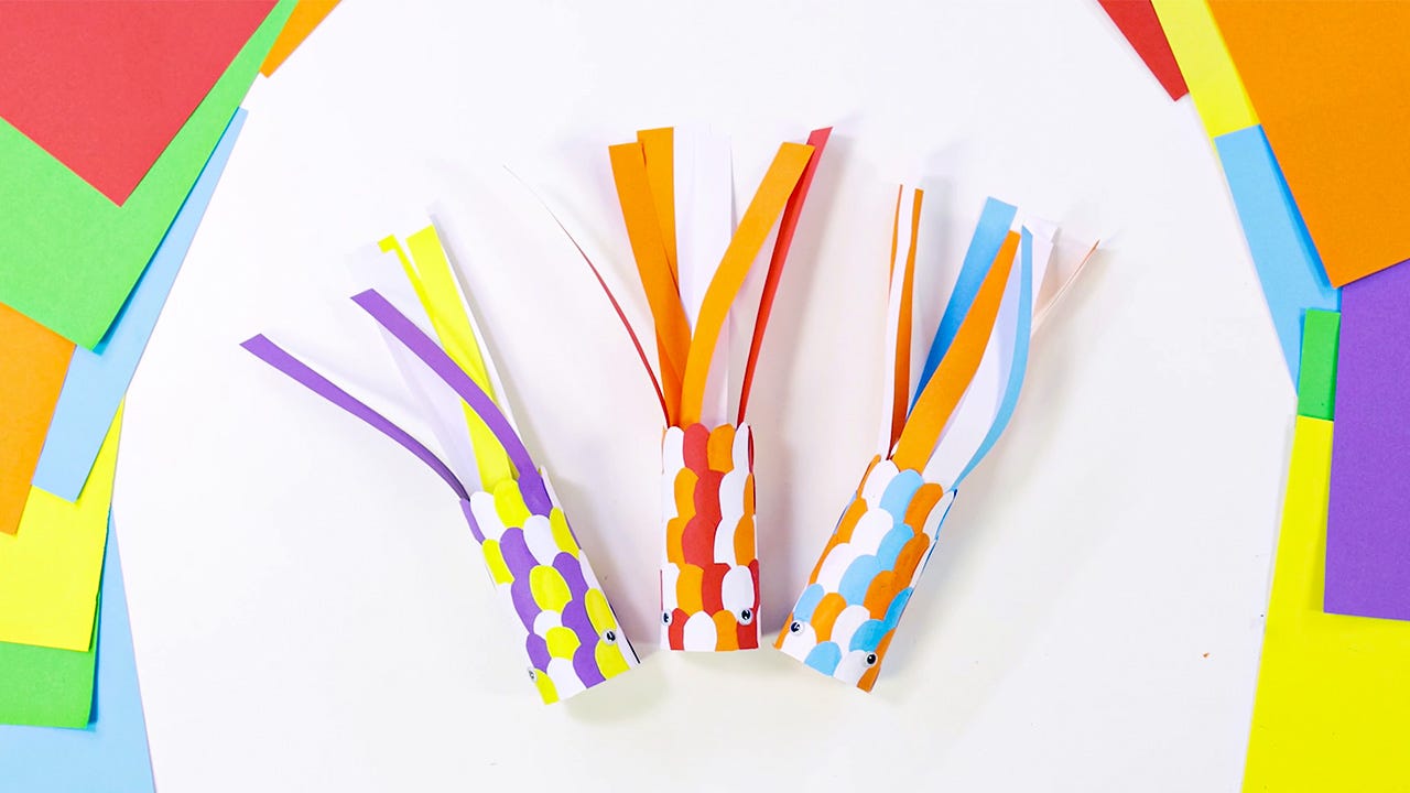 Create a paper tube koi fish with craft paper