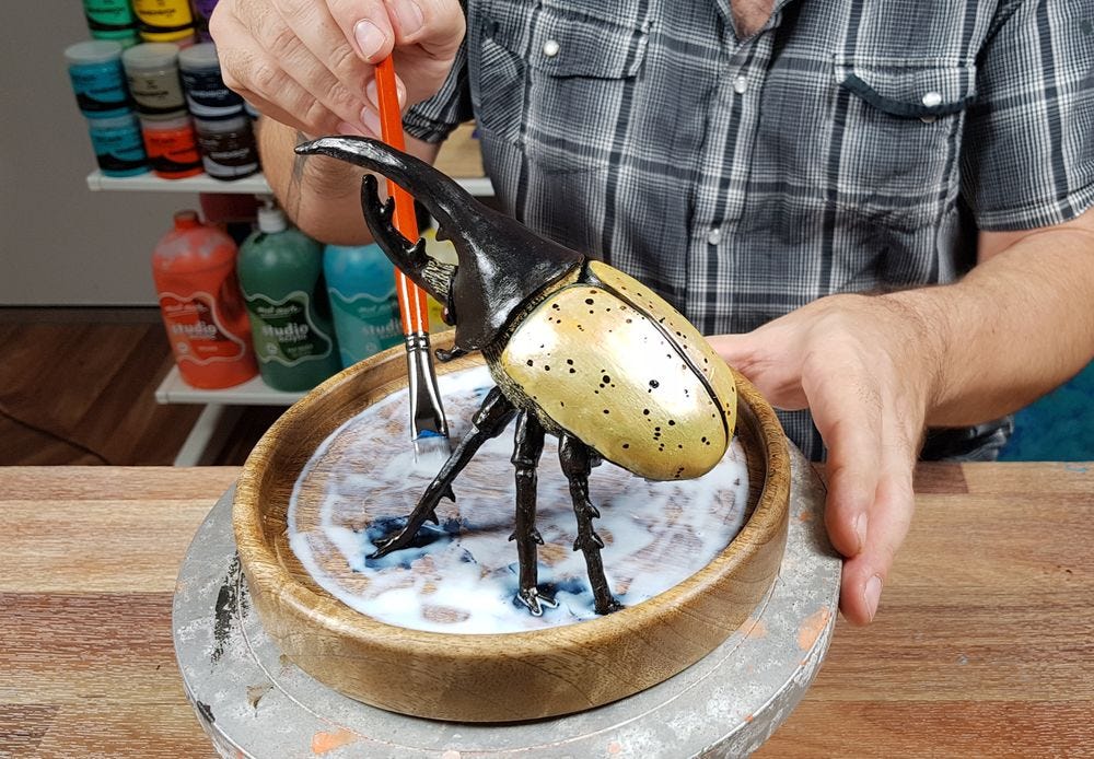 How to paint a beetle sculpture
