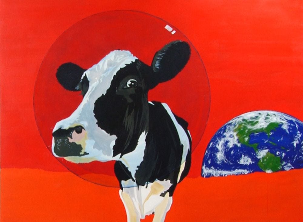 Create a pop art space cow acrylic painting