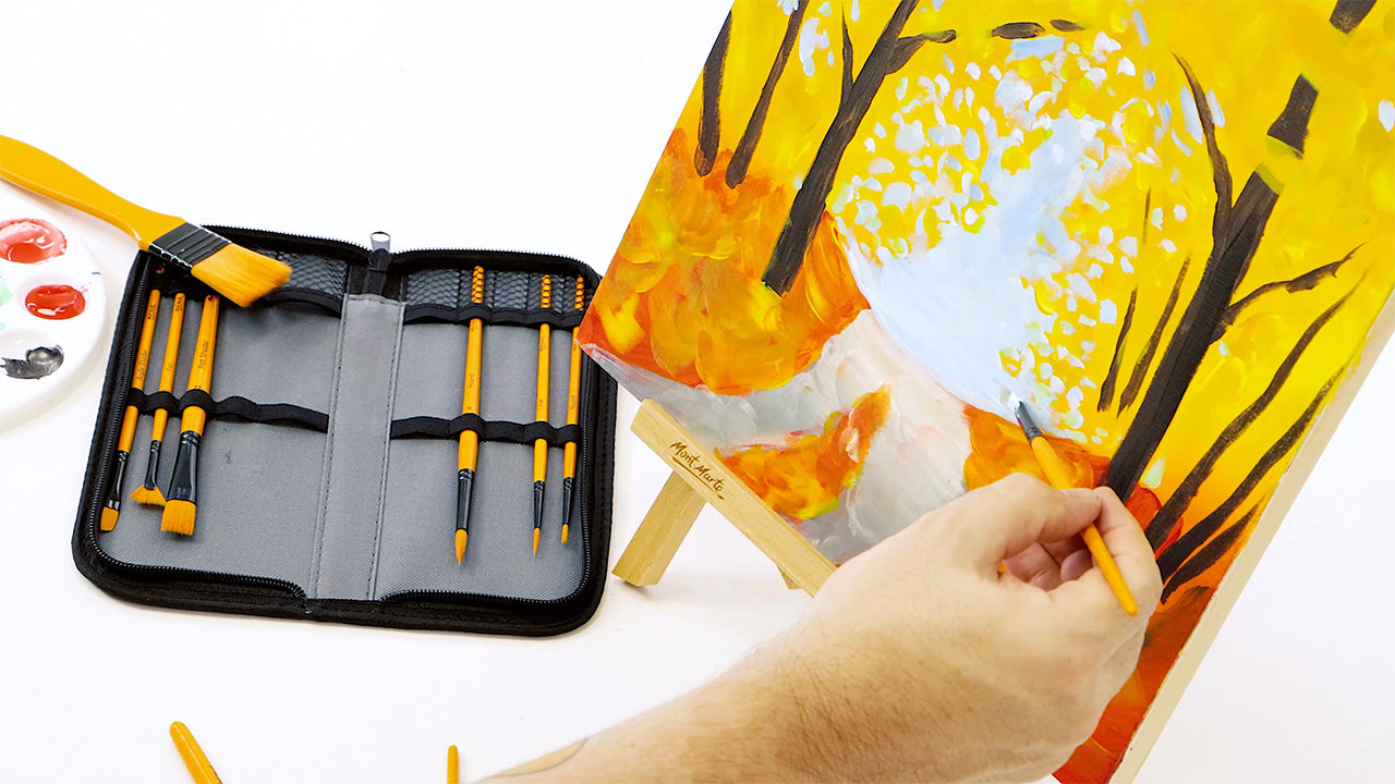 The Mont Marte Acrylic Brush Set is a beautiful selection of taklon bristled brushes ideal for acrylic projects. The handy zip case is perfect for travel and helps to extend the life of your brushes.